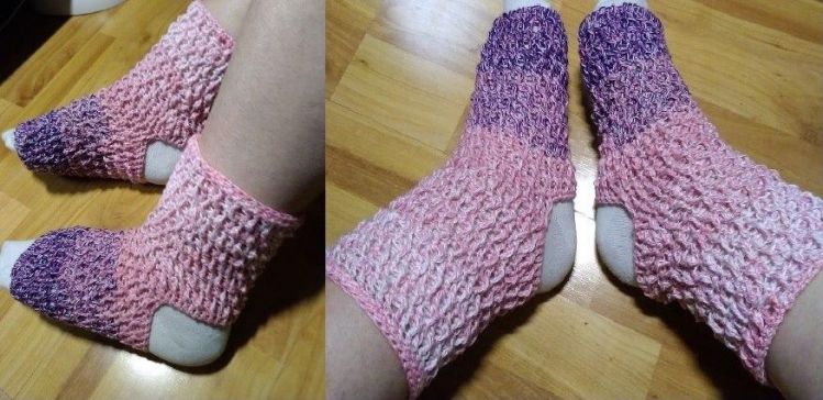 Schuhgr. 39(breit): pro Socke ca. 150m, 5fädig, NS 4,0, Garn: 50BW/50Poly