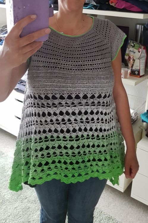 Einfache, verspielte Zipfeltunika mit fernseh- und anfängertauglichem Muster