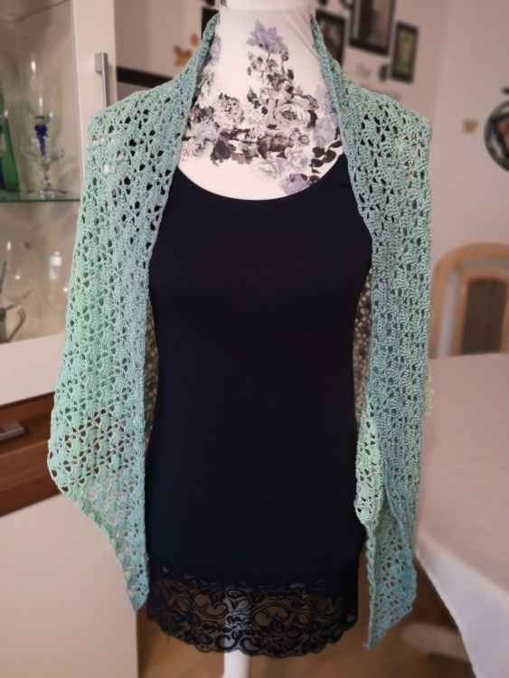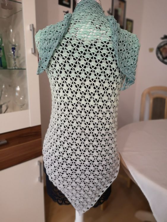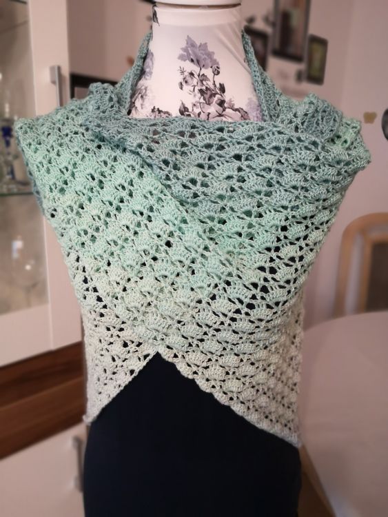 Bei einem 3 fädigen Bobbel und einer Nadelstärke von 3.0 benötigt man ca 1000 m Lauflänge je nachdem wie fest oder locker man häkelt. Dann hat das Tuch folgende Maße ca 177 x 90 cm. Man kann natürlich auch mehr Lauflänge verwenden um ein größeres Ergebnis zu erzielen.