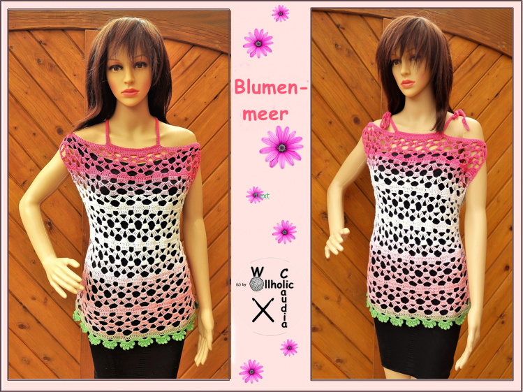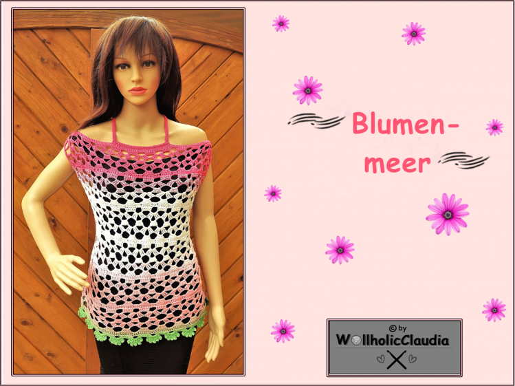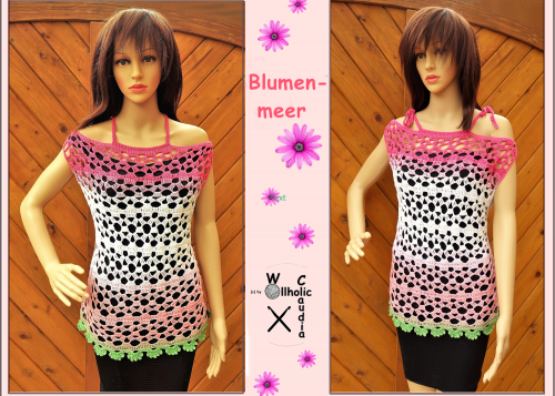 Häkelanleitung Shirt "Blumenmeer" ist nicht nur perfekt für heiße Sommertage- es ist auch noch ruck-zuck gehäkelt. Du kannst das Top ganz individuell deinen Maßen anpassen, es als Neckholder tragen oder über den Schultern binden. .
