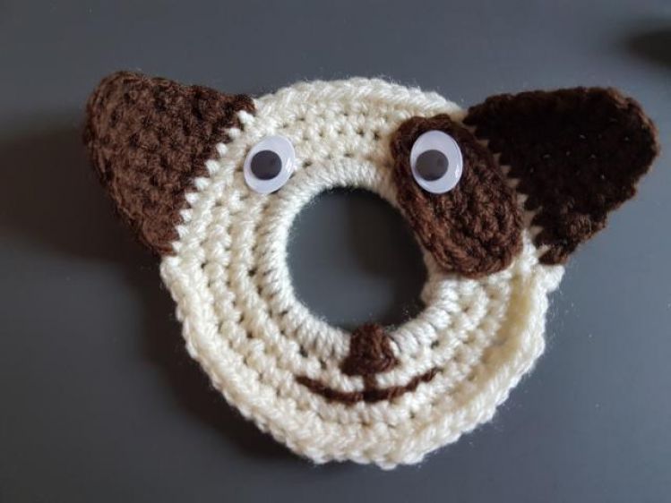 Benötigtes Material: Polyacrylgarn 50g/133m, Häkelnadel 4,0 Gummiring, Schere und Nadel