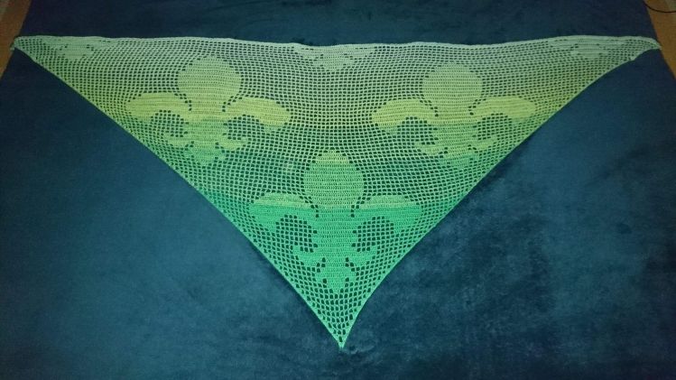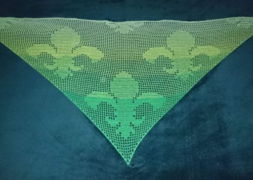 Die Anleitung ist auf 4 Seiten in teilweise Schrift (Erklärung Filethäkeln), der Anfang des Tuches in Pc-Häkelschrift und Zählraster geschrieben.