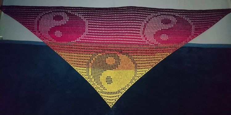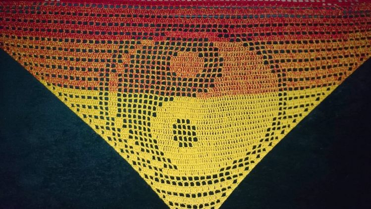Die Anleitung ist auf 4 Seiten in teilweise Schrift (Erklärung Filethäkeln), der Anfang des Tuches in Pc-Häkelschrift und Zählraster geschrieben.