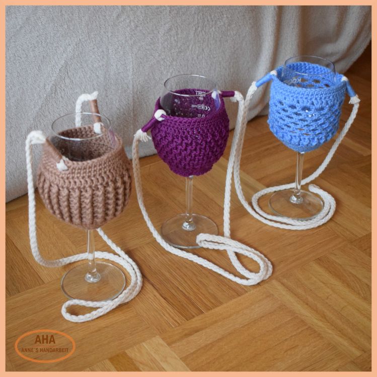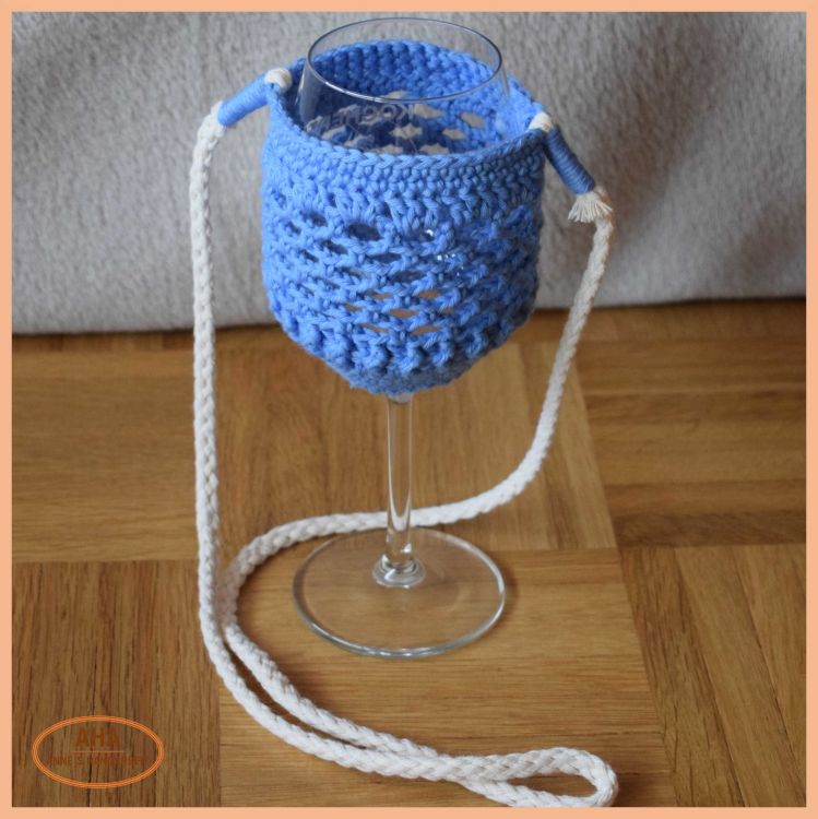 Winnie ist ein gehäkelter Weinglashalter und für alle gängigen Weingläser verwendbar.