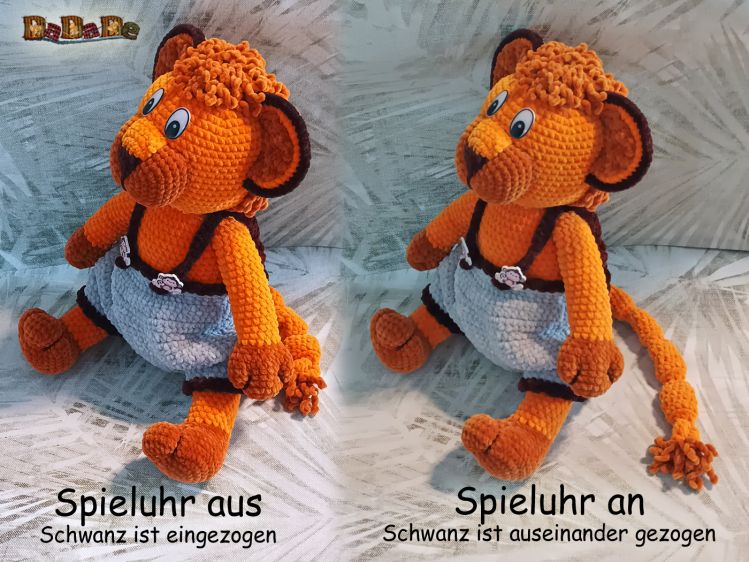 Der Löwe kann natürlich auch ohne Spieluhr gehäkelt werden, einfach als kuscheliges Lieblingstier.