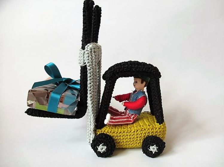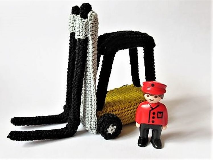Für alle Fans von fahrzeugen aller Art ist dieser kleine Gabelstapler gedacht, den du aus wenigen Wollresten häkeln kannst.