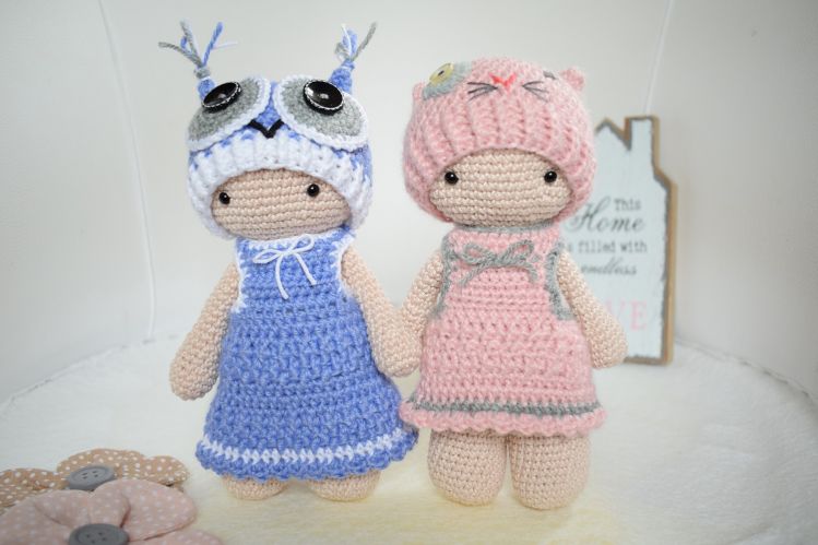 Mit dieser Anleitung erhältst NUR du das Tamituzi-Kostüm „ELLI&Minka“ bestehend aus einem langen und einem kurzen Kleid, und 2 Mützen (Eule und Katze) Die Anleitung für die zugehörige Tamituzi-Puppe findest du bei meinen anderen Anleitungen.