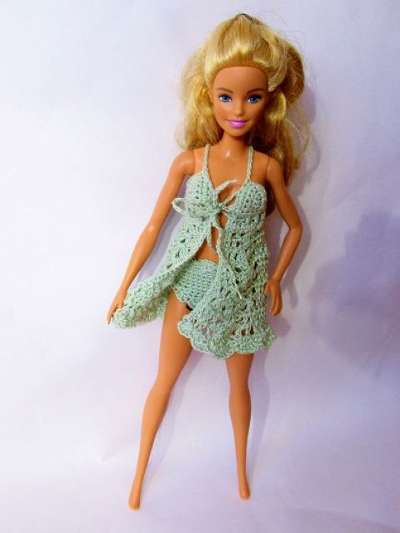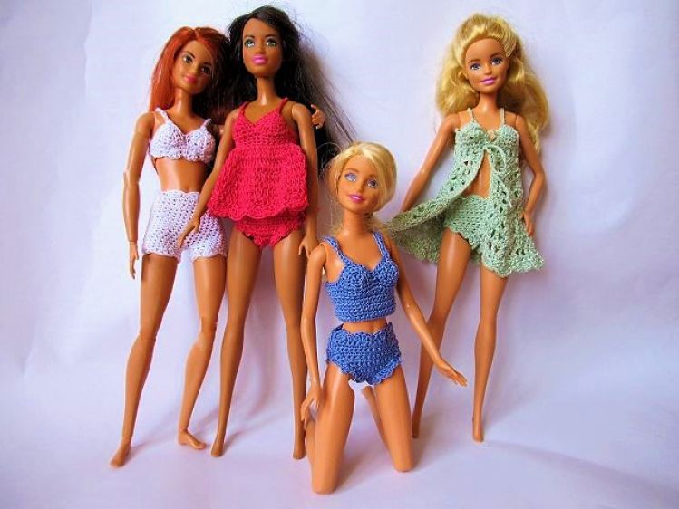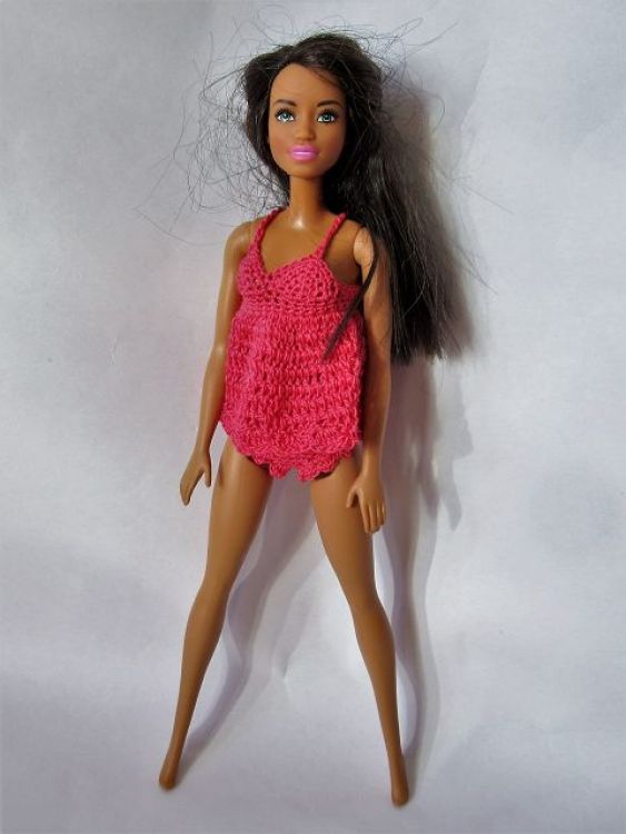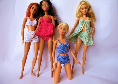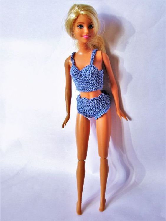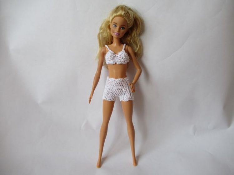 Auch die Barbiepuppen sollen richtige Unterwäsche bekommen. Aus dünnen Baumwollresten kannst du dieses reizende Wäscheset häkeln. ich habe dafür baumwollgarn der Stärke 10 und eine Häkelnadel 2,25 mm verwendet.