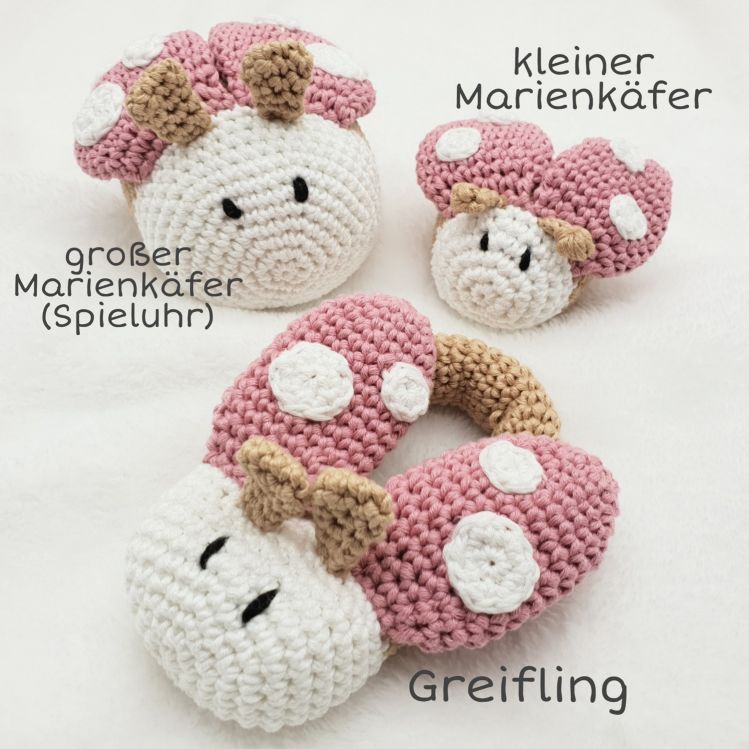 Marienkäfer Marie gibt es nun auch im günstigen Sparset. Darin enthalten sind die Anleitungen für die Spieluhr, dem Greifling und dem kleinen Marienkäfer, welcher sich prima eignet als Maxi Cosi Baumler, Taschenbaumler, Anhänger einer Kinderwagenkette,...