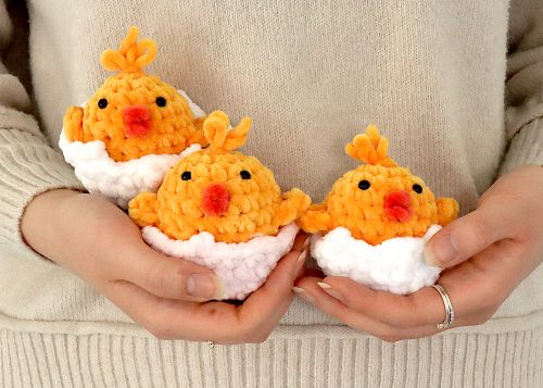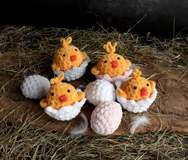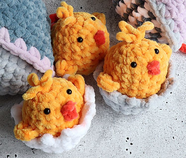 Süße Küken mit Eierschalen und Ei - Häkelanleitung