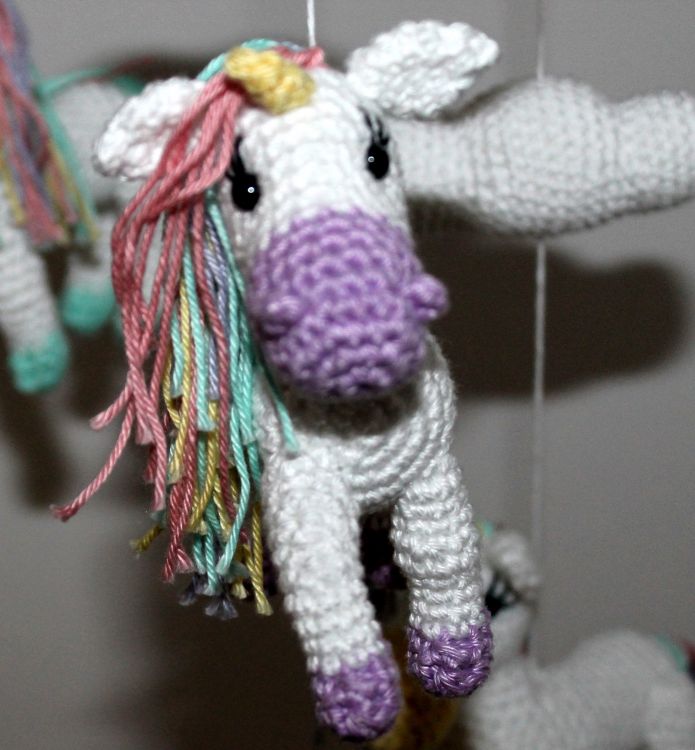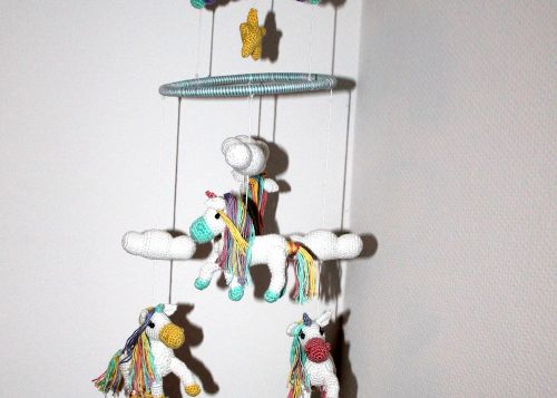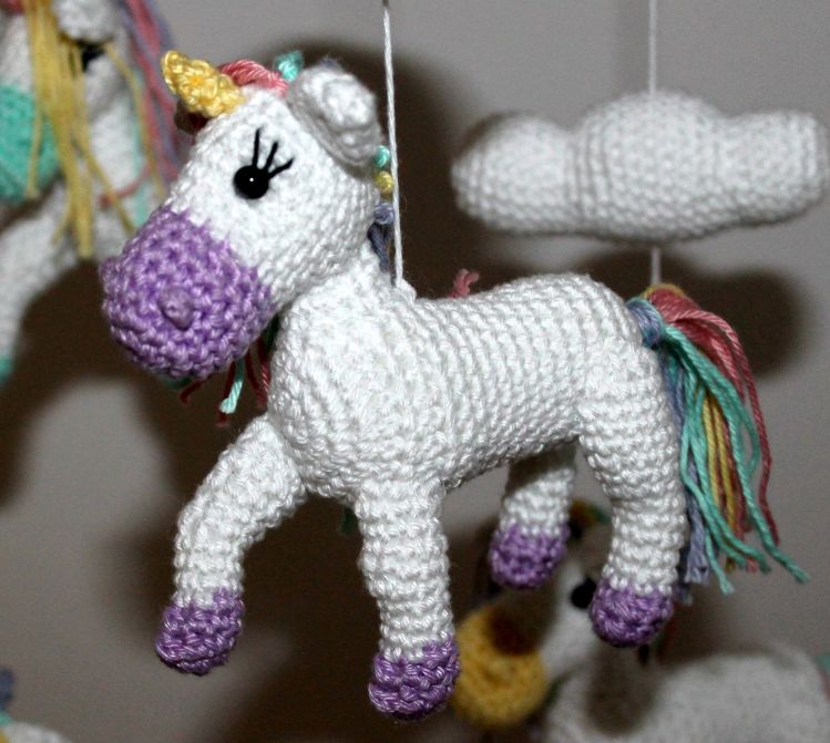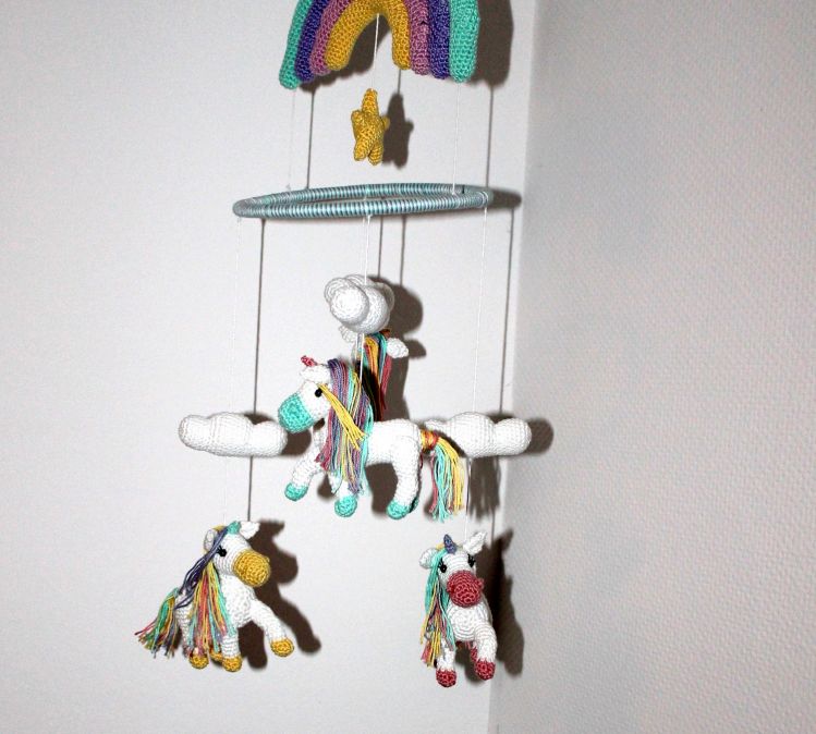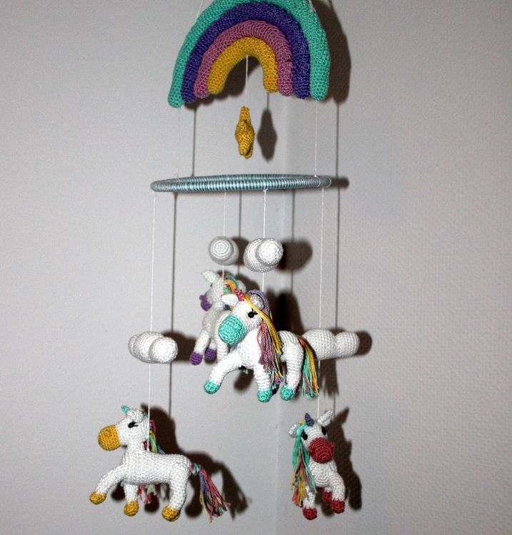 On this sweet mobile 4 little unicorns are dancing luckily in the wind.