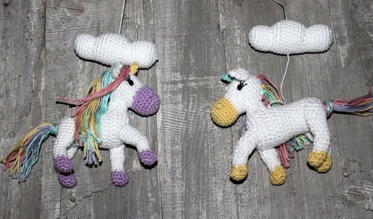 The instructions include both the explanation for the little unicorn, the star, the rainbow and the clouds, as well as the instruction, how to put the mobile together.