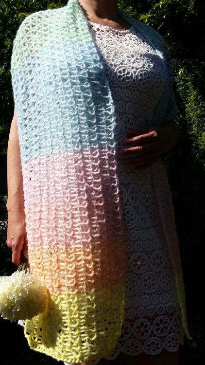 Das Muster dieser Stola ist locker und luftig und macht dieses Teil zum idealen Begleiter für Sommerabende.