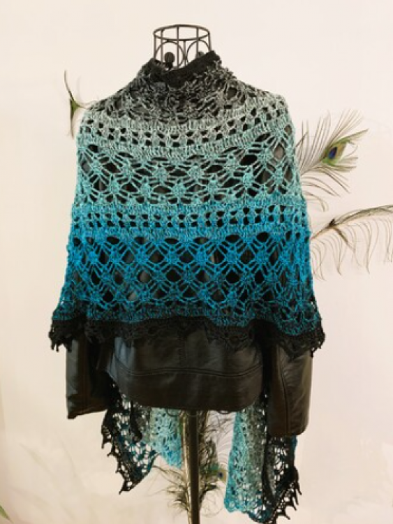 Die auf den Fotos gezeigte Stola hat folgende Dimensionen: 220 cm x 50 cm; die Stola kann in jeder beliebigen Länge und Breite gehäkelt werden.
