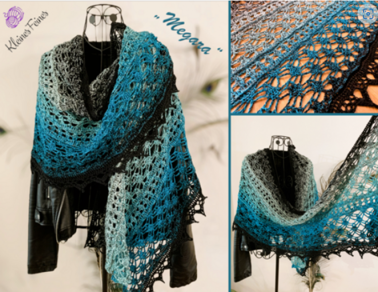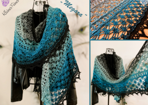 Mit dieser Anleitung kannst du die elegante Stola Megara häkeln. Sie besticht durch ein locker-luftiges Netzmuster mit einem verspielten Zwischenmuster. Die Stola kann in beliebiger Länge und Breite gehäkelt werden, ist anfänger- und fernseh-tauglich, und kann leicht abgewandelt werden (mit/ohne Zwischenmuster), breitere/schmälere Streifen).