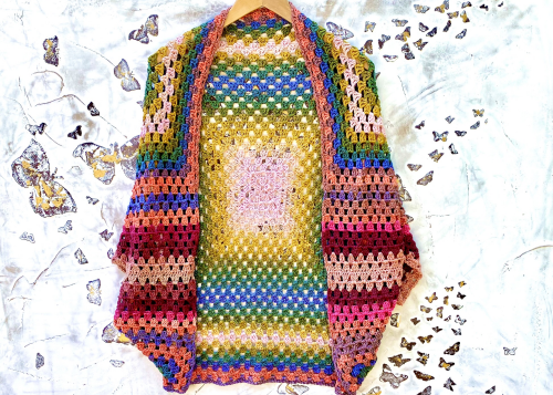 Dieser Sommer wird bunt! Nach dem V-Neck Shirt kommt nun ein fröhlicher Seelenwärmer im angesagten Hippie-Boho-Style daher! Er wird zunächst als Granny Square gehäkelt und dann noch etwas verändert. Es gibt vier verschiedene Größen. Der Seelenwärmer kann aber auch auf jede beliebige Größe angepasst werden.