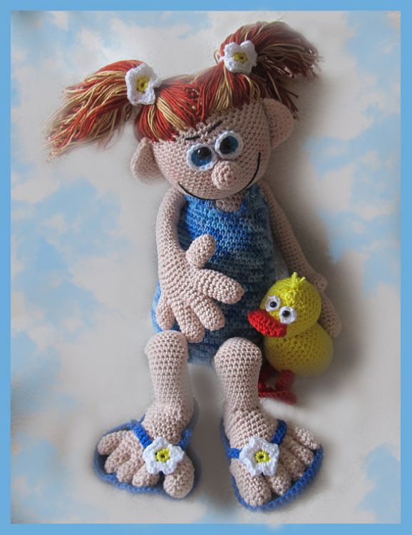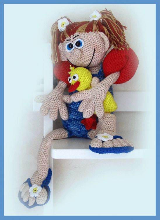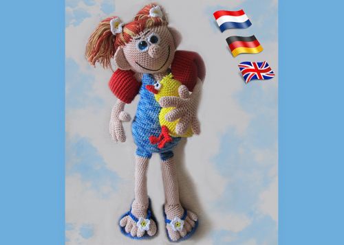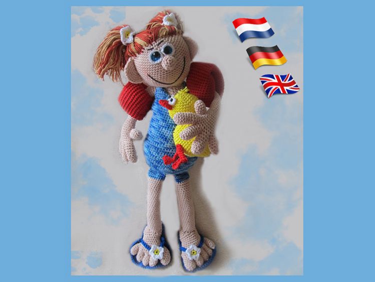 * De pop wordt (bij gebruik van haaknaald 3) 45 cm groot.