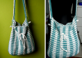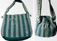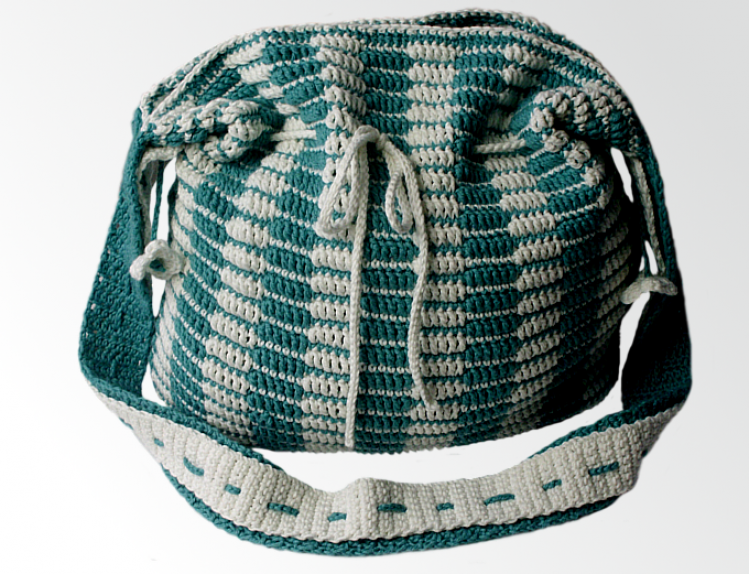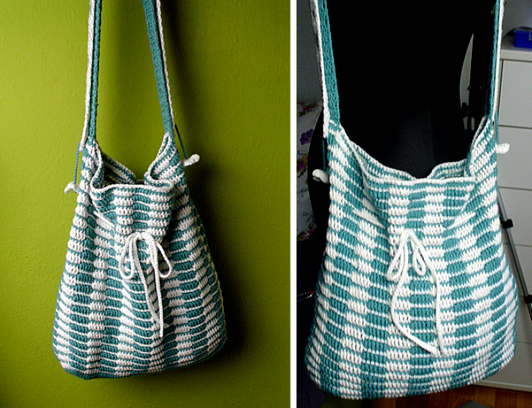 Häkeltasche im Wellenmuster. Die etwas andere Art einer Einkaufstasche. Kein löchriges Netz, sondern eine blickdichte Aufbewahrung, damit nicht jedermann sieht, was du bei dir trägst. Dazu noch ein toller „Hingucker“.