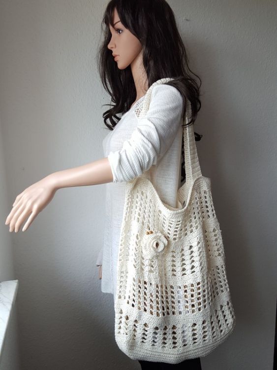Häkelanleitung einer sehr hochwertigen Strandtasche Sommernachtstraum Die Strandtasche hat ohne Henkel folgende Maße: Breite: 36 cm Höhe: 40 cm Tiefe: 15 cm Anleitung von 8 Seiten mit handschriftlicher Häkelschrift. Sie benötigen: 300g Peterle Natur 100% Baumwolle super Glanz 50g Lauflänge 125m Häkelnadel Nr. 3 5 Holzperlen Stopfnadel, Schere Meine Anleitungen dürfen nicht weiter verkauft werden.