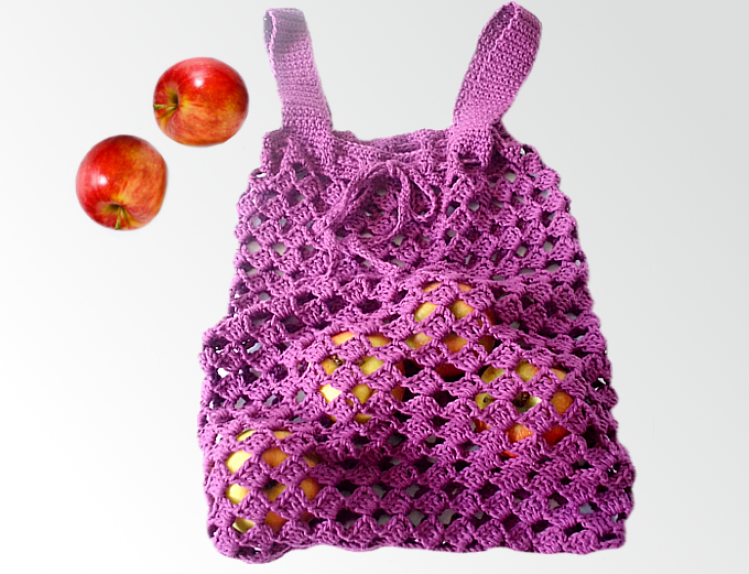 Wenn man die Henkel dieses Häkelnetzes etwas verlängert, wird daraus problemlos ein kleiner Rucksack. Ob als Einkaufsnetz oder als Rucksack verwendet, beides macht das Einkaufen leichter und schont die Umwelt.