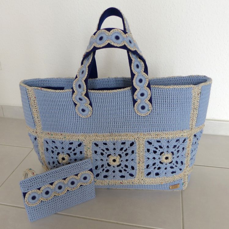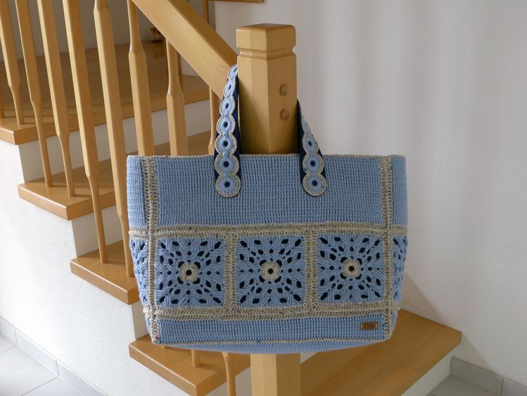 Die Anleitung umfasst insgesamt 52 Seiten mit zahlreichen Bildern. Allein das Häkeln des Grannys zeige ich euch anhand von 99 Bildern. Schritt für Schritt führe ich euch von der ersten Masche bis zur fertigen Tasche.