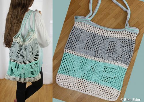 Durch das Filetmuster ist die Tasche schnell gehäkelt und auch eine schöne Geschenkidee.