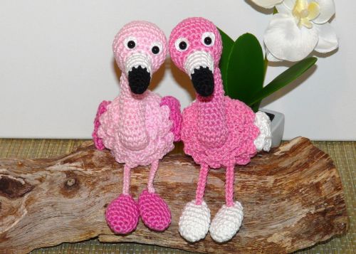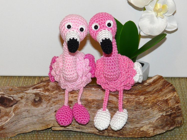 Je nach Garn­ und Häkelnadelstärke variiert die Größe von den Flamingos.
