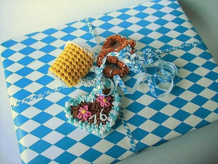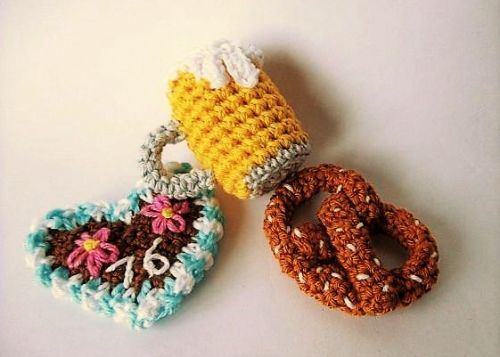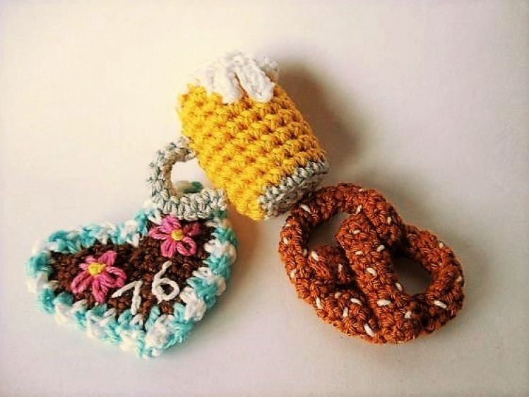 Ein tolles kleines Wollrestprojekt für zwischendurch: der Schlüsselanhänger Oktoberfest. Du bekommst die Anleitung für den Bierkrug, die Breze und das Lebkuchenherz. Das Herz kannst du nach deinen eigenen Vorstellungen besticken und so aus dem Schlüsselanhänger ein ganz persönliches Geschenk machen. Tipp: Die kleinen Teile sind auch toll als Geschenkanhänger!
