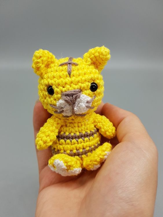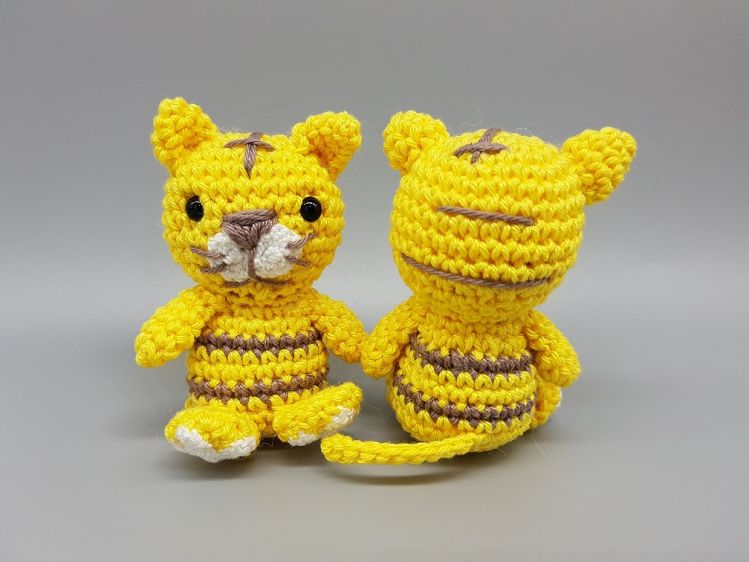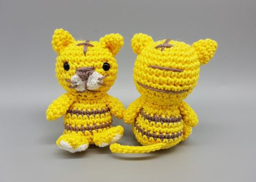 Der kleine Mini Tiger wird mit Ohren ca. 5-6 cm groß und eignet sich hervorragend als Schlüsselanhänger, Taschenbaumler oder kleiner Glücksbringer. Er ist schnell gehäkelt und auch für Anfänger geeignet.