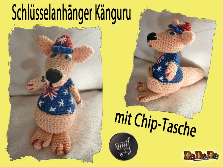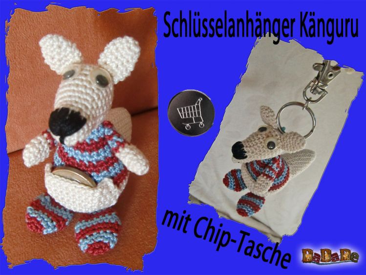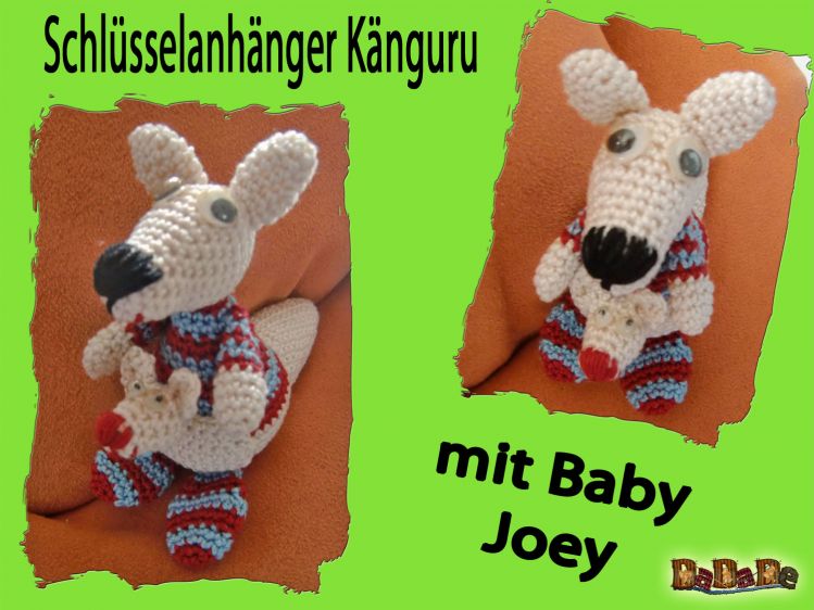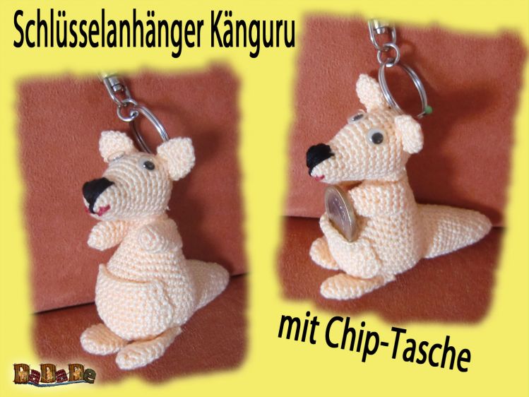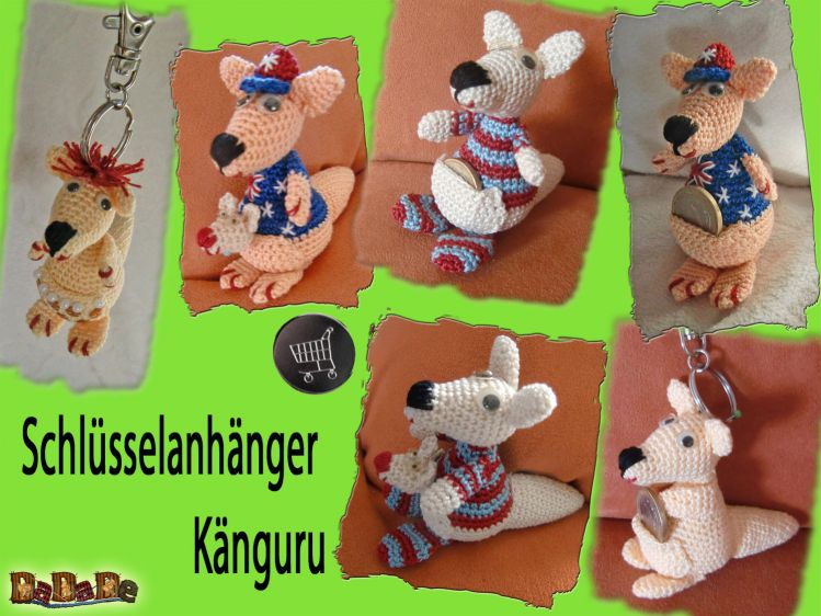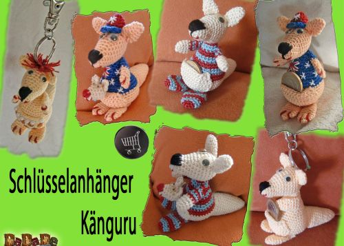 Sie kaufen hier die Häkelanleitung für den Schlüsselanhänger Känguru in 3 Varianten,