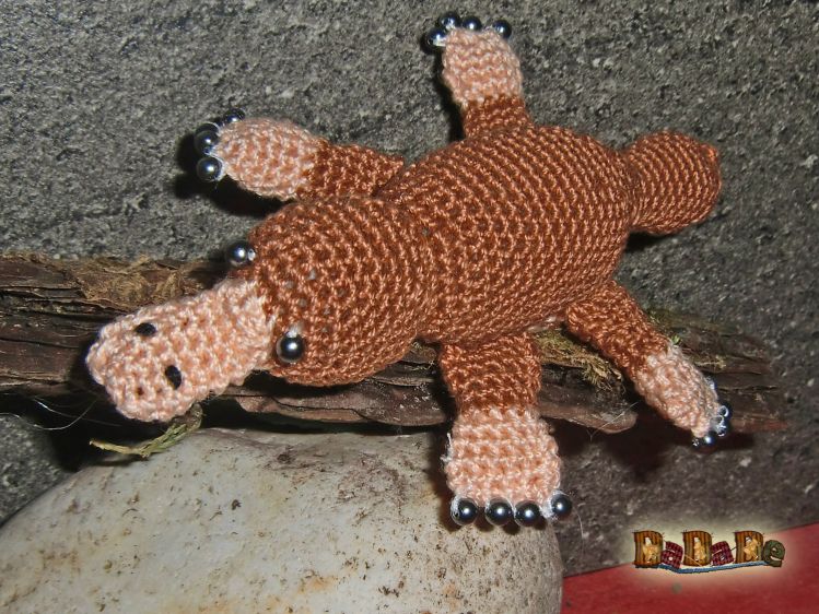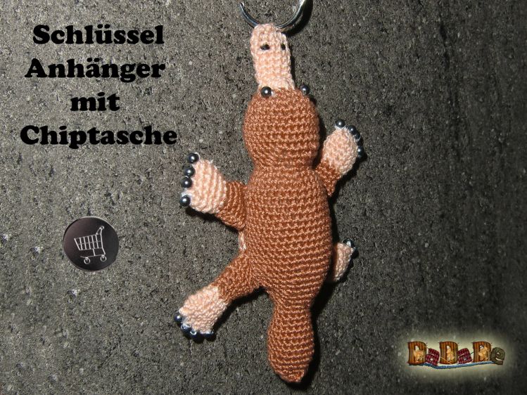 Mit Baumwolle der Nadelstärke 2 wird der Schlüsselanhänger Schnabeltier ungefähr;