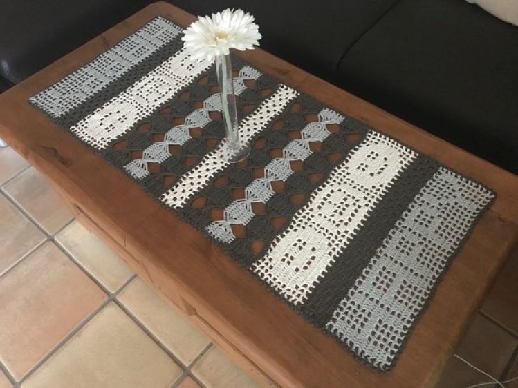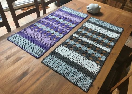 Gehäkelt sind beide Tischläufer mit Schachenmayr Catania Original