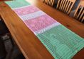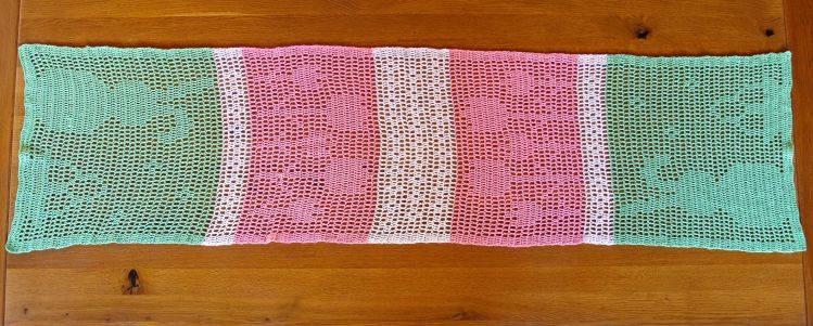 Mein Tischläufer ist nach dem Spannen ca. 40cm breit und 164cm lang.