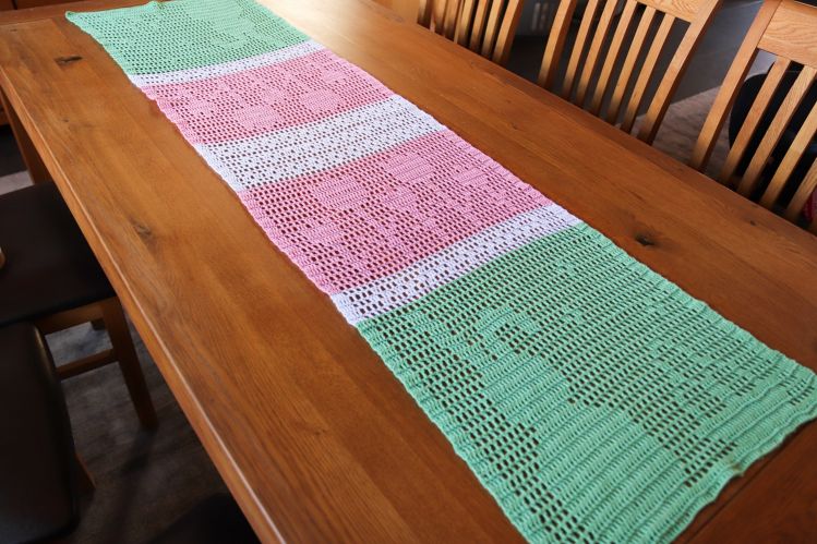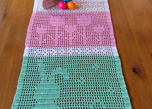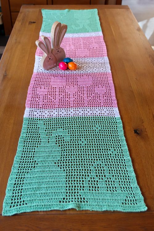 Ihr liebt Ostern, Hasen, Blumen und den Frühling? Passend zur Tischdecke gibt es nun auch den Tischläufer "Osterfreuden". Er kann gut mit den anderen Anleitungen kombiniert werden.