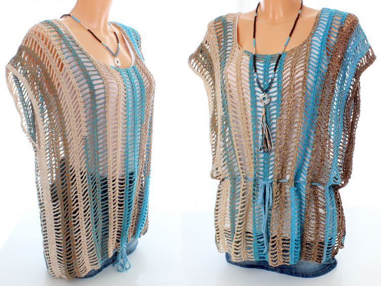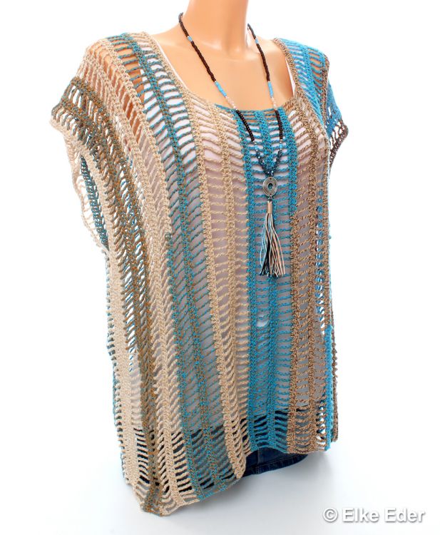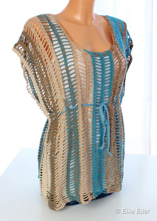 Eine wunderbar luftige und leichte Tunika - nicht nur für den Sommer. Sie lässt sich schnell und leicht häkeln und mit einem engen Kleid oder einem Langarmshirt darunter, hast du auch für Herbst und Winter ein tolles Kleidungsstück. Der Farbverlauf kommt direkt aus dem Bobbel, dadurch sehr einfach zu häkeln.