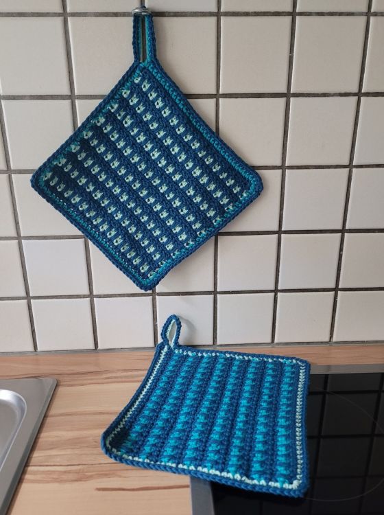 Topflappen Valentina. Ein echter Hingucker für deine Küche und ebenso ein wunderbares Geschenk für einen lieben Menschen. Auch gut geeignet als Anfänger Projekt für jemanden, der Häkeln erst vor Kurzen für sich entdeckt hat. In meiner Anleitung beschreibe ich wie immer ausführlich und mit vielen Bildern, wie du die Topflappen nacharbeiten kannst.