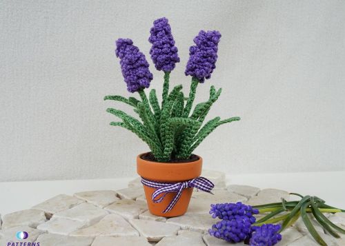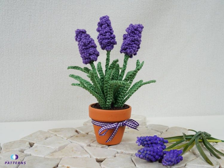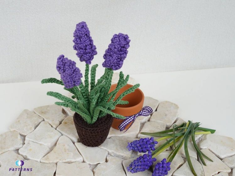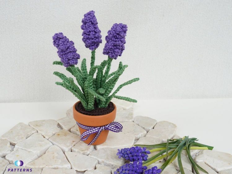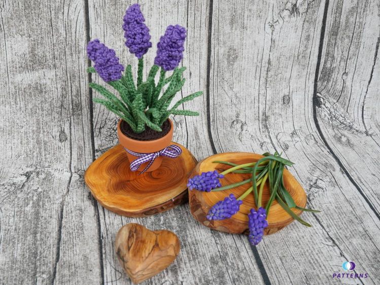 Traubenhyazinthen sind eine der ersten Blumen im Jahr. Ich finde sie besonders schön, da sie auch den Frühling ankündigen. Leider verblühen sie viel zu schnell. Daher habe ich mir jetzt Traubenhyazinthen im Topf gehäkelt. Beschenke dich, oder deine Liebsten mit diesen tollen Blumen. Diese verblühen garantiert nicht und sind eine hübsche Dekoration, z. B. auf dem Küchentisch, der Fensterbank, oder auch an Orten, an den kein Tageslicht kommt und an denen "normale Blumen" nicht wachsen. Diese Traubenhyazinthen sind sehr pflegeleicht, sie müssen nicht gegossen werden und sind ohne Schmutz und schnell umgetopft.