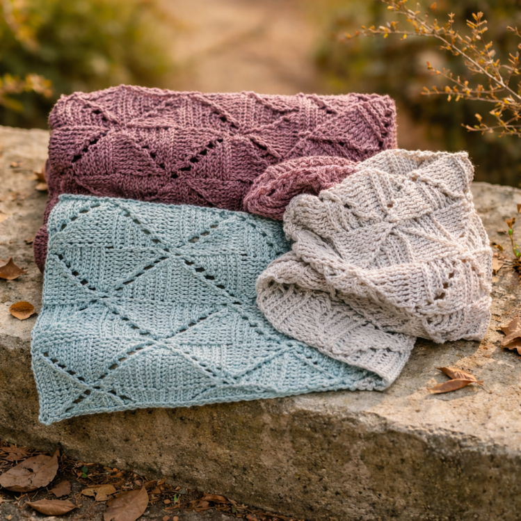 Das Design ist neu entwickelt und so aufgebaut, dass du die Größe ganz flexibel anpassen kannst – vom kleinen Halstuch bis zur großen Stola ist alles möglich.
