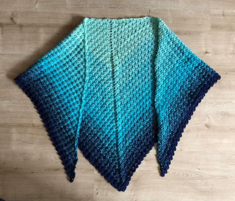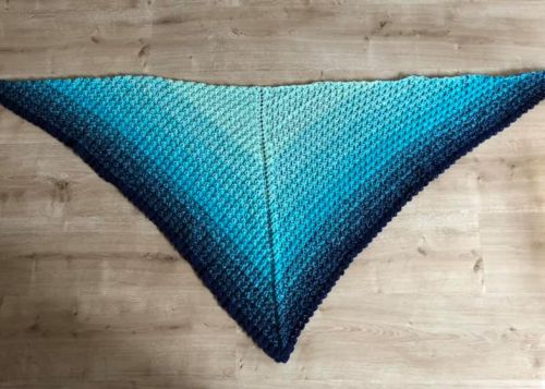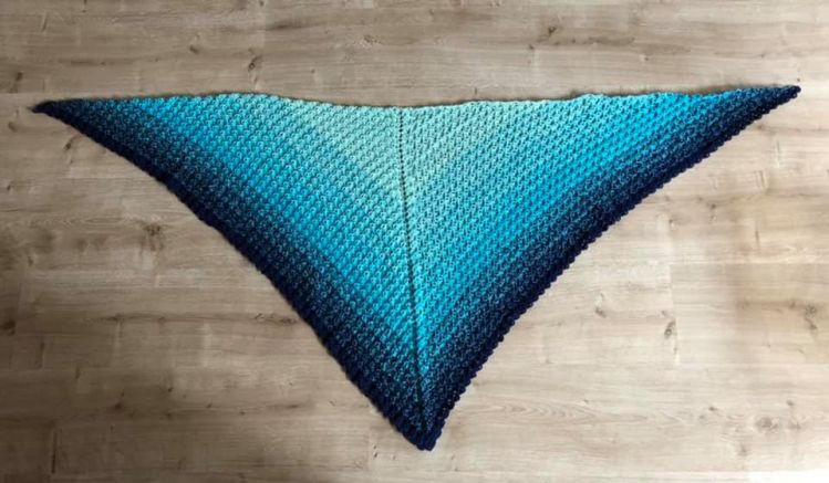 Die Größe des Tuches kannst du selber bestimmen. Es kommt dabei auf die Stärke und Lauflänge der verwendeten Wolle an.
