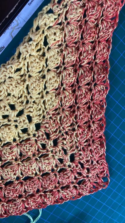 Wichtig, das Tuch sollte gespannt werden, um die endgültige Größe zu erreichen. Außerdem kommt so die Plastizität des Musters besser zur Geltung.