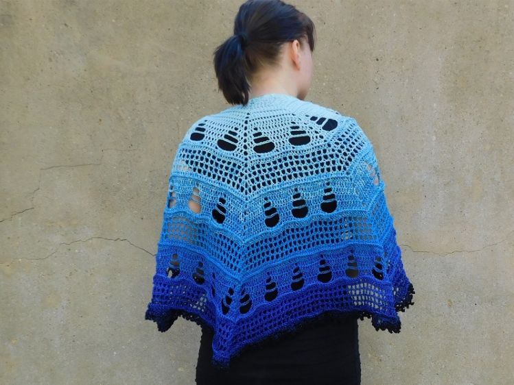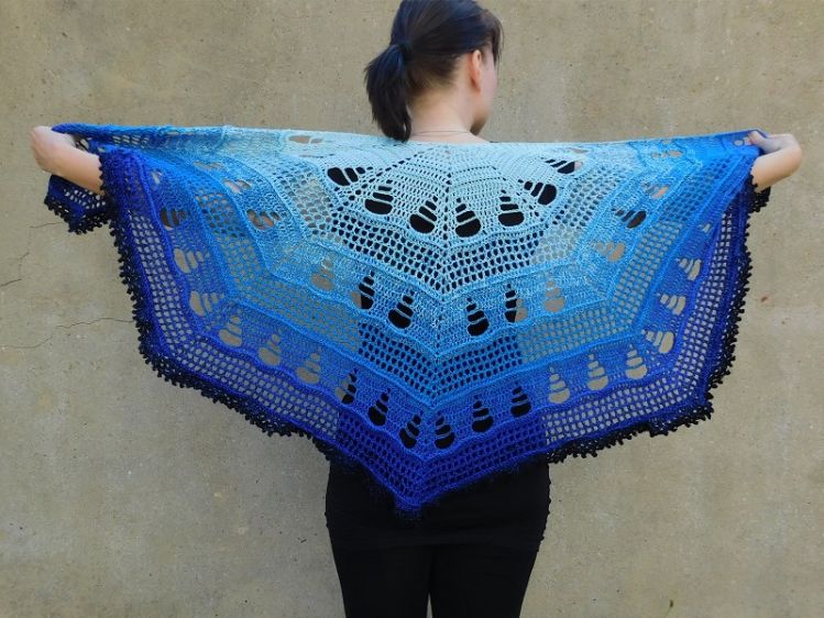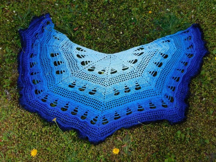 Bei Verwendung des Originalgarns/Nadelstärke wird das Tuch ca. 128cm breit und 58cm hoch.