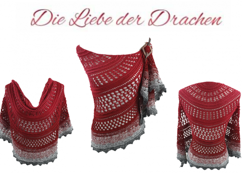 Romantisch oder auch sportlich, das ideale Tuch "die Liebe der Drachen". Mit der außergewöhnlichen Form ist es ein absolutes Must have. Möchtest auch du dieses schöne, extravagante halbrunde Tuch? Dann ran an deine Häkelnadel. Durch das luftig leichte Muster ist es auch für Anfänger geeignet.