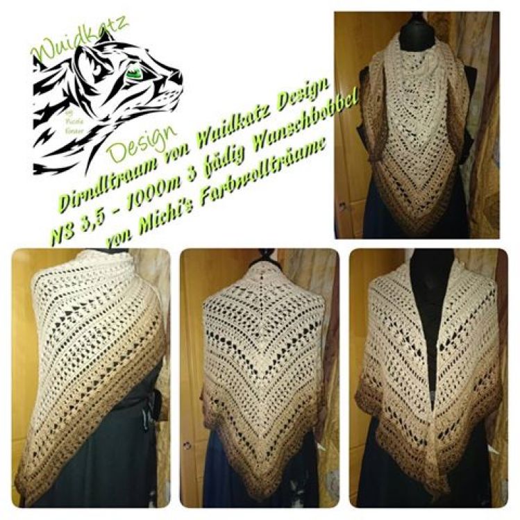 Dieses Tuch ist speziel entworfen worden als Accessoire zum Dirndl dazu. Natürlich kann man es auch zu allem anderen Tragen. Dieses Tuch ist beliebig erweiterbar, weshalb jegliches Garn in allen gewünschten Stärken benutzt werden kann. Garnmenge ab 500m LL