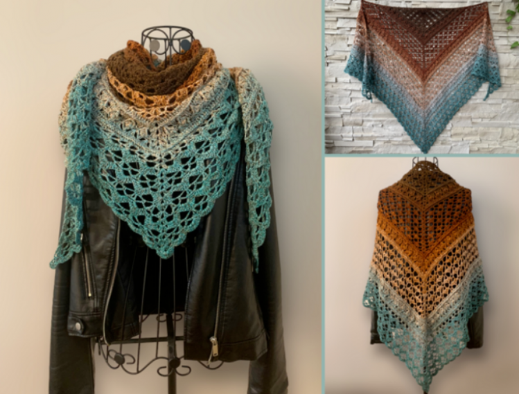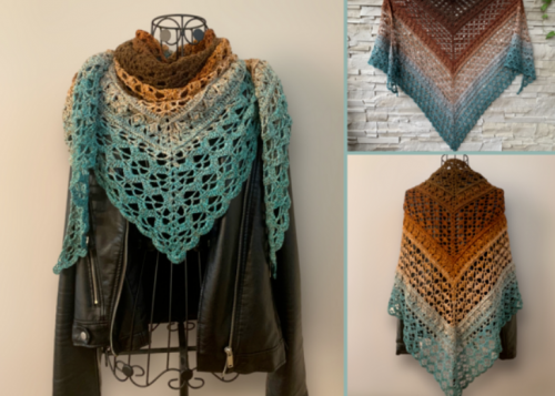 With this pattern you can crochet a bautiful triangular scarf, with different loose and airy patterns.