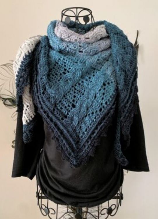 The finished shawl has the following edge lengths: 110 x 110 x 145 cm. Depending on the wool and crochet hook used, the size may vary. The shawl can be crocheted as large or small as you like.