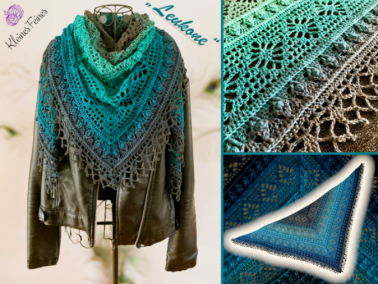 The triangular scarf Leukone is a wonderful, easy to crochet symmetric shawl that can be crocheted in any size.