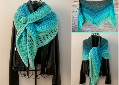 The triangular scarf Kalypso is the flat version of the scarf Akaste, it is also one of the special scarfs where you rotate your scarf regularly to have the beautiful patterns created. The scarf contains 9 different patterns, so you will not get bored while crocheting it.