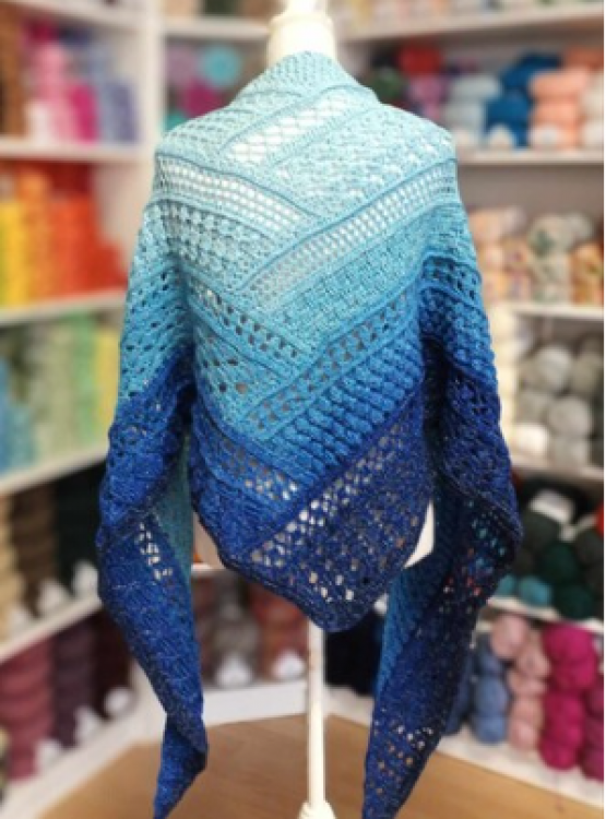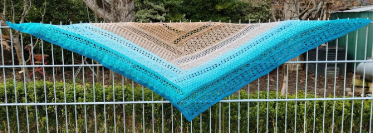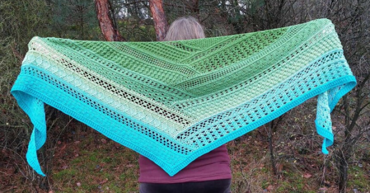 Kalypso ist ein flaches Dreieckstuch, das im selben Prinzip wie die Tücher Akaste und Nemesis gehäkelt wird - ein "Tuch mit dem Dreh".