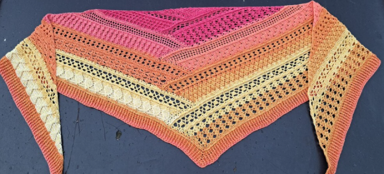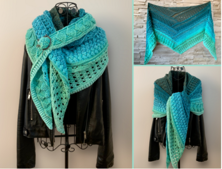Das Tuch wird in Blöcken gehäkelt, und regelmäßig gedreht, um an der zweiten Seite weiterzuhäkeln. Die abwechslungsreichen Muster sorgen dafür, dass es beim Häkeln nicht langweilig wird, und das Ergebnis spricht für sich!