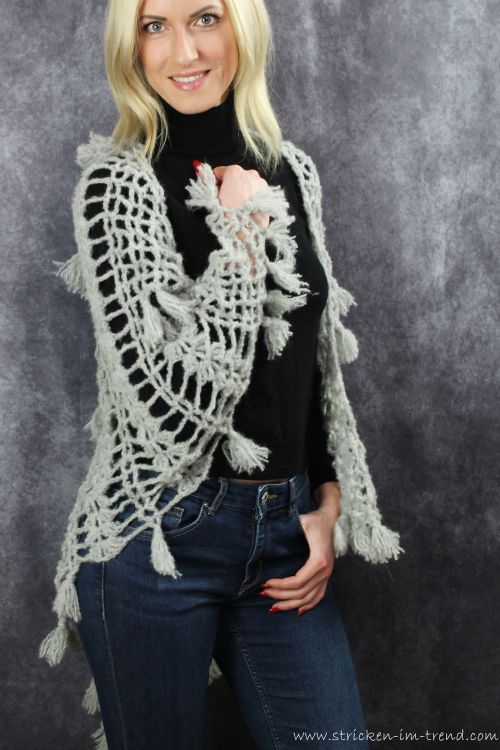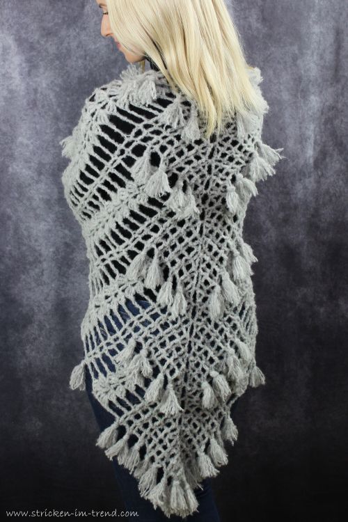 Zur Verdeutlichung findet Ihr einen umfangreichen Auszug der Häkelschrift sowie ein Schema (Fransenanbringung) in der Anleitung.